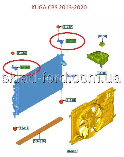 Верхний кронштейн крепления втулки радиатора ESCAPE 2012--, FOCUS 2.0 ECOBOOST 2012--, 8V6Z8A193A