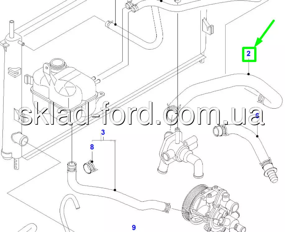Верхний патрубок радиатора TRANSIT 2.4TD 2000--2007 with AC, CH 4080503