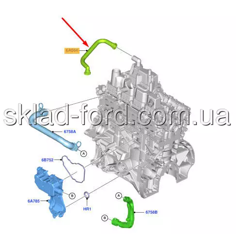 Верхняя трубка EGR FOCUS,C-MAX,KUGA,MONDEO,FUSION,ESCAPE 1.5 ECOBOOST 2014---, DS7Z6A664C