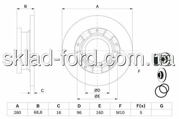 Задний тормозной диск TRANSIT 2007-- FWD, 10-01-02-0219