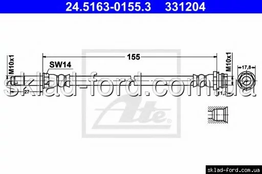 Задний тормозной шланг GALAXY,MONDEO 2007-- с механическим ручным тормозом, 1671646